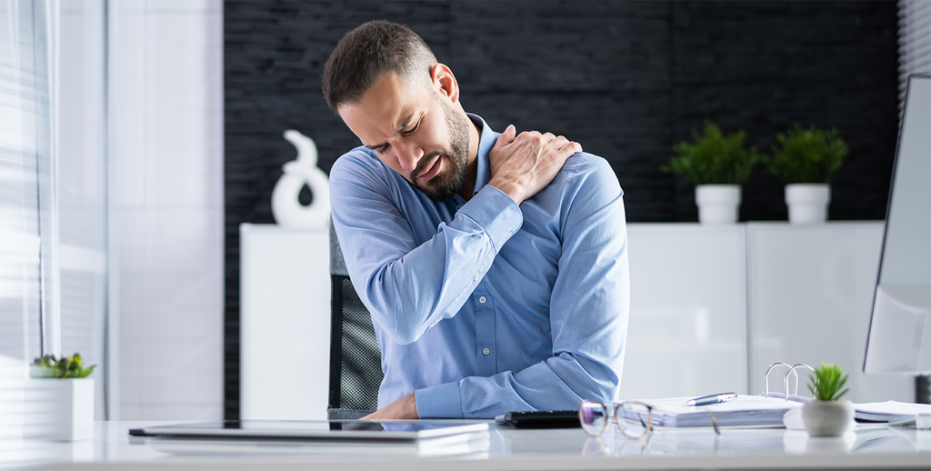 Constantly hunching over our devices can also hurt our posture, leading to neck and back pain, headaches, and other musculoskeletal issues. To combat poor posture, try to sit up straight with your shoulders back and your feet flat on the floor when using a computer or phone. Consider investing in ergonomic furniture or tools, such as a standing desk, a supportive chair, a neck/hand/leg massager, etc, to help maintain a healthy posture and prevent pain in various body parts.
