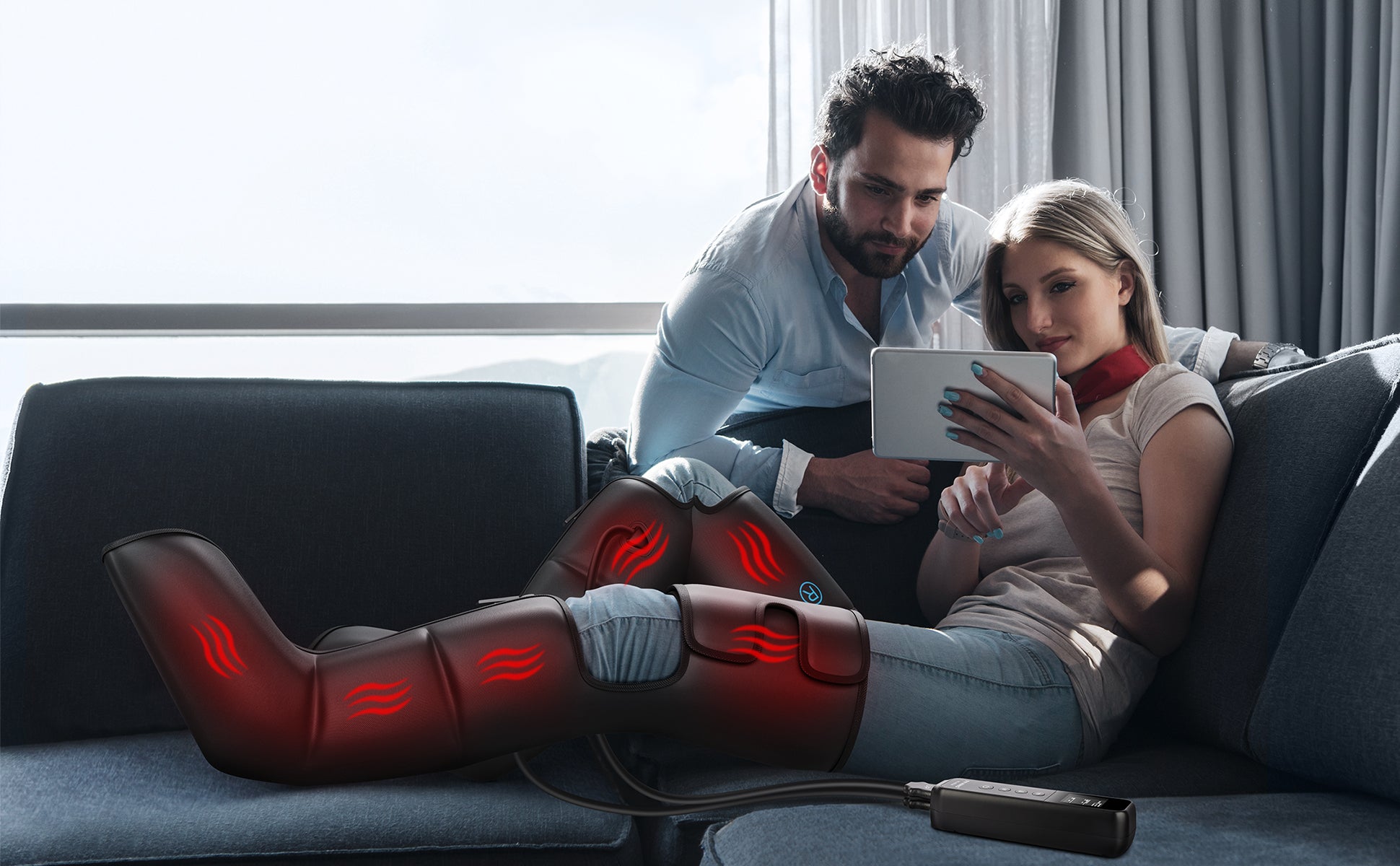 Relieve the pain in your legs with the Leg Massager. This device uses pressure to return blood flow to the lower limbs and relieve pain in your calves, ankles and feet.