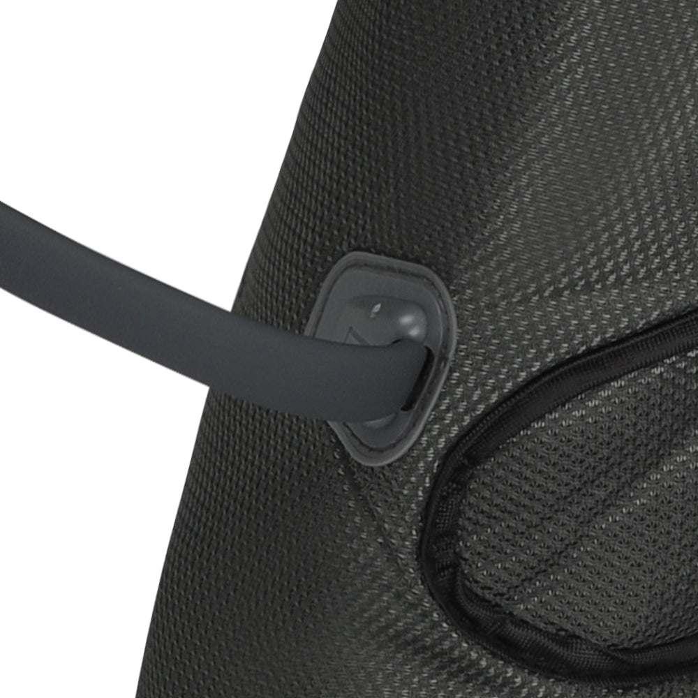 This part of the product is made from a robust cloth fabric that allows for breathability. The material's durability suggests that it can withstand frequent use and the breathable nature means it allows air to circulate, which could prevent overheating and provide comfort during prolonged use. -