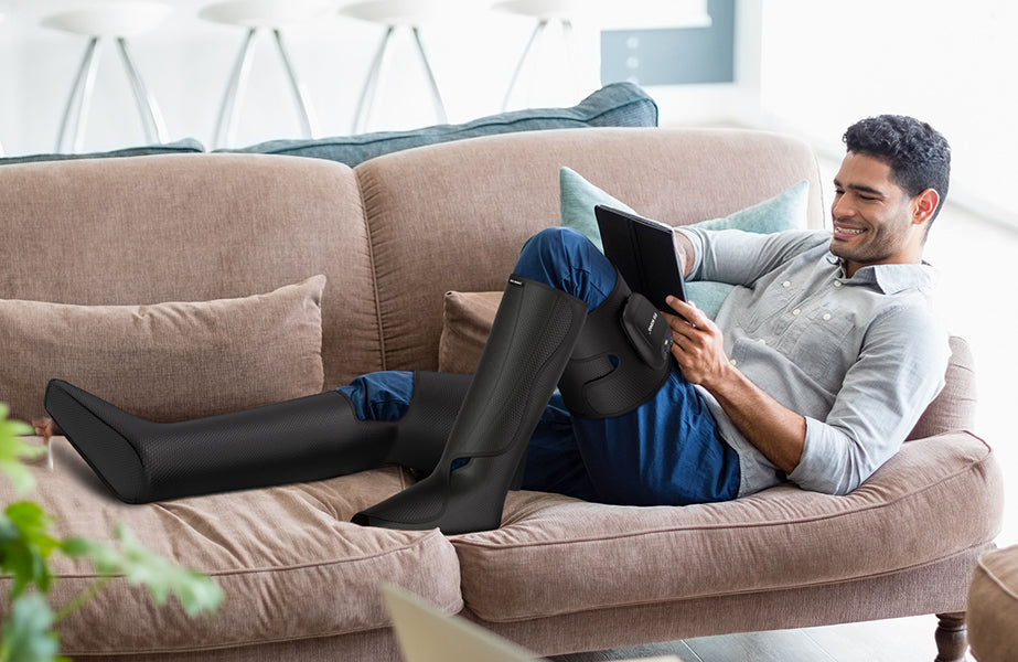 Once you have selected your settings, start the massage. Sit back and relax as the massager inflates and deflates to provide compression massage to your legs and feet.