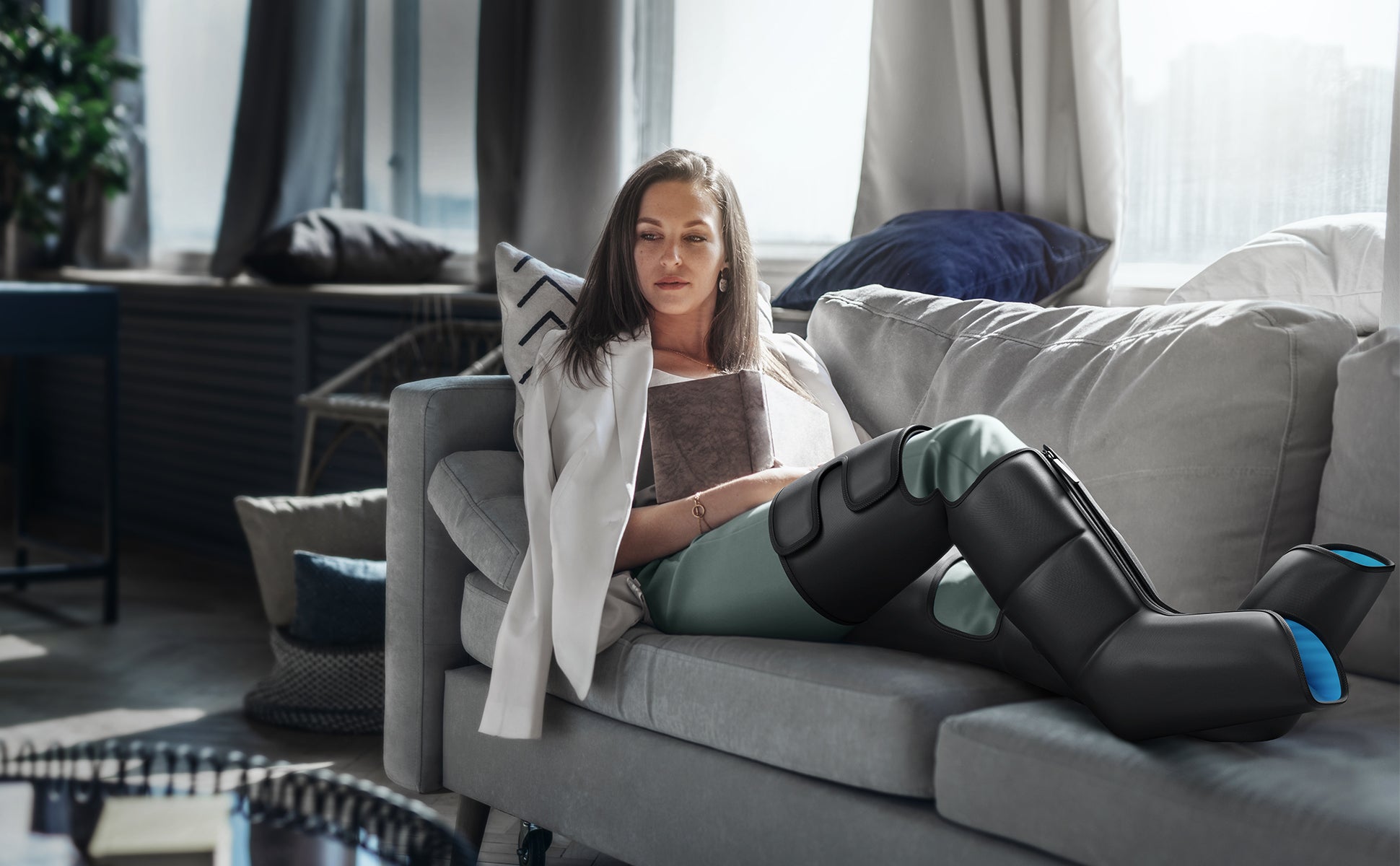 Once you have selected your settings, start the massage. Sit back and relax as the massager inflates and deflates to provide compression massage to your legs and feet.